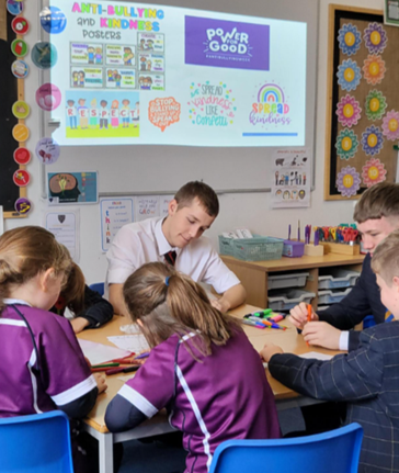 During the afternoon, the students worked together to design vibrant anti-bullying posters that will be displayed around the school next week. These posters focus on the importance of standing up for others, spreading kindness, and celebrating our differences. It was inspiring to see our Year 13 pupils supporting and guiding the younger students, while the younger pupils shared their own ideas with confidence and enthusiasm.