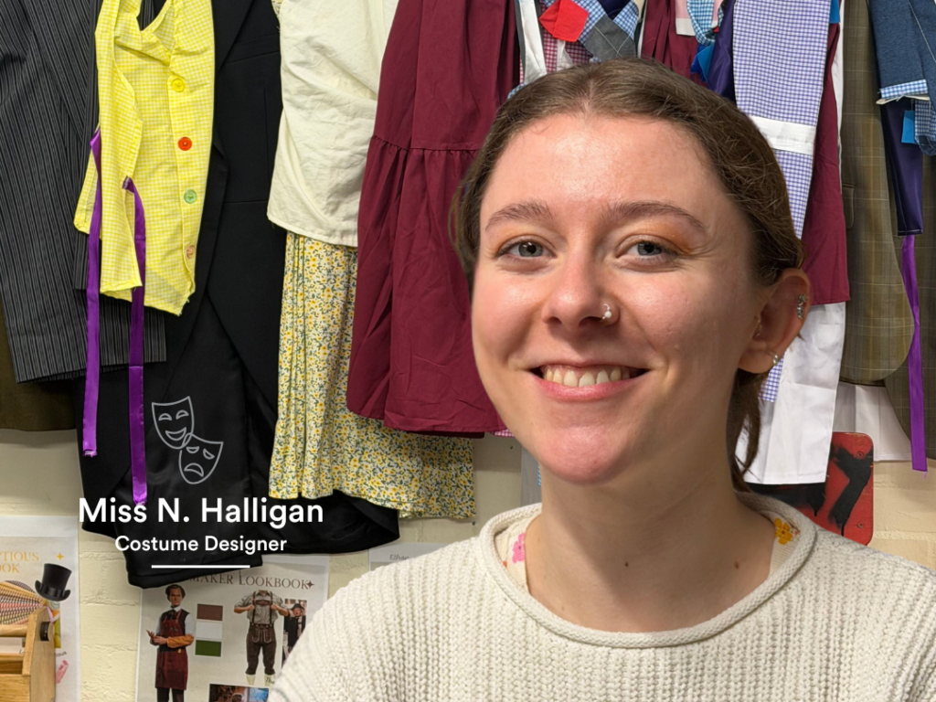 Miss Halligan’s journey with DCSF productions began in 2023, when she worked on her first junior show, Charlie and the Chocolate Factory. Throwing herself straight into the creative process, she supported the production through set building and painting, helping to create the magical world of Willy Wonka on stage.